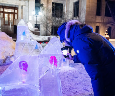 Installation Exquise Banquise at Place Pasteur for Nuit Blanche’s 20th anniversary, exploring climate change, celebration, and Nordic identity. Conceived by 8 UQAM Event Design students in collaboration with sculptor Séverine Beauregard.